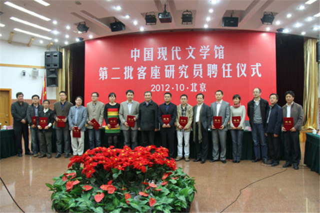 2012年10月22日,黃平、金理、劉濤、李丹夢、傅強、張麗軍、曾一果、何同彬、郭冰茹、劉大先、劉志榮、張立群十二人獲聘中國現(xiàn)代文學館第二屆客座研究員。郭冰茹(右四)在現(xiàn)場。