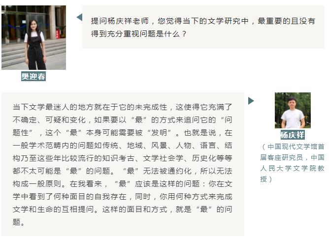 胡妍妍:有方位感,清楚自己在什么樣的歷史脈絡(luò)、現(xiàn)實(shí)視野和價(jià)值立場(chǎng)所確立的坐標(biāo)上開(kāi)展研究和批評(píng);有真問(wèn)題,最好是那些和自己的思想關(guān)切、閱讀興趣、生命體驗(yàn)有深刻糾纏的問(wèn)題;對(duì)得起“文學(xué)”二字,無(wú)論是文學(xué)研究和文學(xué)批評(píng),都建立在批判性地閱讀和寫作基礎(chǔ)上,不管是從美學(xué)的、理論的還是從思想史、社會(huì)史的角度進(jìn)入,最后的輸出一定是一種寫作——有判斷力、有高度智識(shí)含量、讓人們?cè)俅巍岸ňΑ蔽膶W(xué)的寫作。文學(xué)是有益于社會(huì)人生的,希望文學(xué)研究和文學(xué)評(píng)論也能如此。