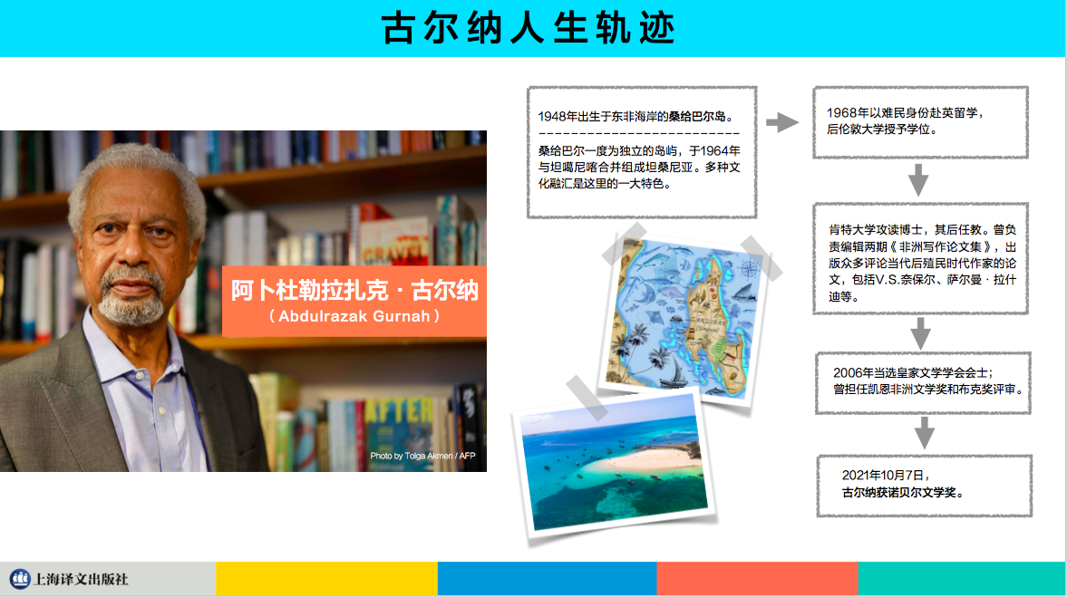 1948年,古爾納出生在東非海岸附近的桑給巴爾島,1968年以學(xué)生的身份來到英國,并用英文寫作。他不僅是小說家,也是一位文學(xué)研究者,曾在肯特大學(xué)(University of Kent)擔(dān)任英語教授,退休后擔(dān)任文學(xué)雜志《瓦薩非瑞》(Wasafiri)的顧問委員會成員,現(xiàn)居坎特伯雷。2021年,“因?yàn)樗麑χ趁裰髁x文學(xué)的影響,以及對身處于不同文化夾縫中難民處境毫不妥協(xié)且富有同情心的洞察”,古爾納被授予諾貝爾文學(xué)獎并受到廣泛關(guān)注。
