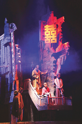 在有限時空內(nèi)表現(xiàn)蕭紅跌宕起伏的一生對于舞臺劇創(chuàng)作者來說非常具有挑戰(zhàn)性,創(chuàng)作者一般的處理方式是呈現(xiàn)自己理解中的蕭紅人生中的重要片段。龍江劇《蕭紅》所選取的片段,更多聚焦于和她的文學創(chuàng)作有關(guān)的人與事。劇中除了集中表現(xiàn)其文學創(chuàng)作成就,也呈現(xiàn)了蕭紅與家庭決裂,蕭紅與汪恩甲、蕭軍的情感糾葛,但這些情節(jié)的設(shè)置是為了突出其成長經(jīng)歷與精神苦悶,而不是以感情糾葛作為噱頭。值得一提的是對蕭紅父親張廷舉和訂婚對象汪恩甲形象的塑造,較之以往更加符合人情,并沒有因為要突出蕭紅的叛逆與成長而將其刻意戲劇化。比如在電影《蕭紅》中,父親以和蕭紅繼母蜷縮在炕上抽大煙的畫面出場,被塑造成頑固、迂腐、保守的形象。而該劇中父女反目分別的一場,表達出父親張廷舉的無奈,也對其內(nèi)心世界進行挖掘,“你是個倔強的冤家,怎么會回去?怎么會低頭?怎么會輸?我早就應(yīng)該想到,早就應(yīng)該想到啊……”充分表現(xiàn)出張廷舉的悔恨與無奈。初中畢業(yè)前夕,張廷舉給蕭紅定下汪家親事,不打算讓其繼續(xù)讀書。蕭紅離家出逃在呼蘭縣城引起不小的風波,她成了呼蘭縣城里與人私奔出走的傷風敗俗的女人。不僅蕭紅遭到輿論的非議,整個張家都受到牽連,父親張廷舉因教女無方被除去黑龍江省教育廳秘書的職務(wù),下放到巴彥縣教育局任督學;弟弟張秀珂從呼蘭轉(zhuǎn)學到巴彥縣中學。為了陪伴孤獨的張秀珂,張廷舉將在哈爾濱二中讀書的堂弟張秀林也轉(zhuǎn)到巴彥上學。在這樣的境況下,可以說,將蕭紅除去族譜、消弭影響也是無奈之舉,父親對蕭紅的離家也并非決絕無情。汪恩甲形象通過伴唱隊員的唱詞來表現(xiàn),“呆少爺偏偏實誠,蠢少爺還很多情,笨少爺也有脾性,拙少爺不改癡心”,本劇也沒有將其塑造成煙鬼、紈绔子弟形象??傊瑥埻⑴e和汪恩甲形象較之以往影視劇表現(xiàn)出的人物形象塑造更豐富,也更加符合人性與人情。