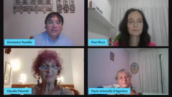 在活動(dòng)上,意大利作家、翻譯家、花達(dá)西亞出版社社長費(fèi)沃里·皮克女士 (Fiori Picco,中文名:雪蓮) ,意大利詩人、弗蘭徹斯克加百利國家文學(xué)獎(jiǎng)主席多梅尼科·法涅洛先生 (Domenico Faniello),意大利著名作家、導(dǎo)演克勞迪婭·帕隆比女士 (Claudia Palombi)和意大利著名詩人、畫家、馬泰拉文學(xué)藝術(shù)獎(jiǎng)主席瑪麗亞·安東內(nèi)拉·達(dá)格斯蒂諾女士 (Maria Antonella D’Agostino)四位嘉賓就魯敏作品展開了熱烈對話,并通過優(yōu)兔(Youtube)平臺播放,吸引了一大批熱愛文學(xué)的意大利讀者在線觀看。
