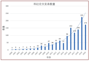 2000—2020年間科幻研究領(lǐng)域年均發(fā)表論文60.19篇,并呈現(xiàn)出較為鮮明的發(fā)展態(tài)勢。