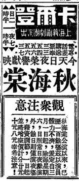 1942年12月,上海藝術(shù)劇團(tuán)在上海卡爾登劇場(chǎng)公演話劇《秋海棠》。