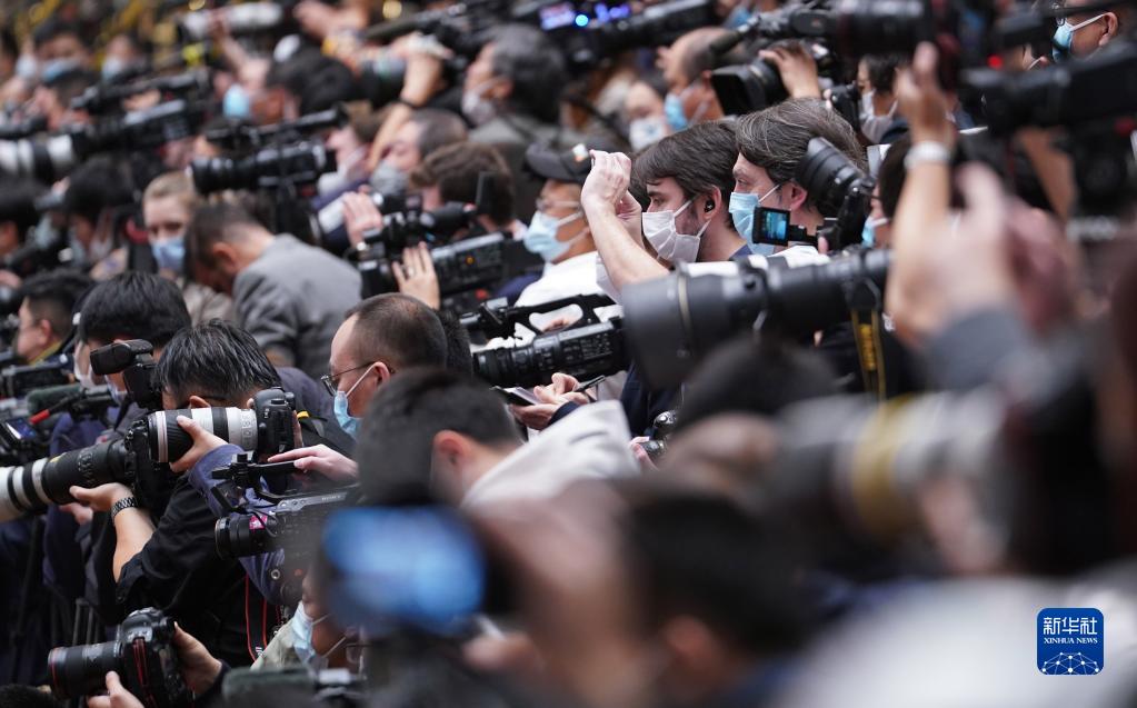 10月22日,中國共產(chǎn)黨第二十次全國代表大會閉幕會在北京人民大會堂舉行。這是記者在采訪拍攝。 新華社記者 陳曄華 攝