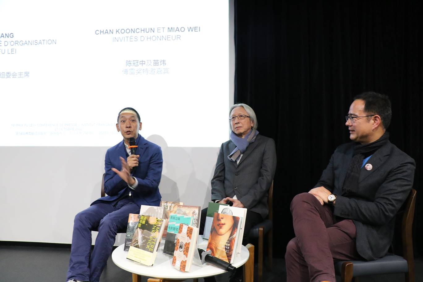 法國駐華大使館文化教育與科學(xué)事務(wù)公使銜參贊裴國良、傅雷獎(jiǎng)組委會(huì)主席董強(qiáng)以及本屆終評(píng)特邀嘉賓、作家陳冠中、苗煒等出席新聞發(fā)布會(huì), 本屆評(píng)委會(huì)主席、翻譯家余中先以視頻形式對(duì)10部入圍作品做簡要介紹。