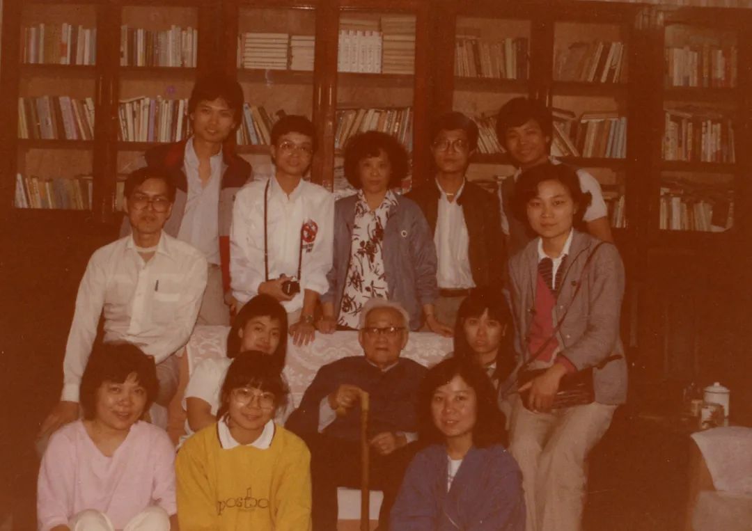 見面后,巴老留給他們什么印象呢?是不是像很多粉絲對于偶像那樣,不見倒好,見了之后反而失望了呢?伍美琴背著給巴老的小禮物和《隨想錄》,和同學(xué)一起來到了武康路113號。出現(xiàn)在她面前的巴老,不是青春煥發(fā)的戰(zhàn)士,而是一位有著“花白的頭發(fā)和顫抖的身體”的老人,那一天巴老身體也不舒服,說話喘氣也很重。但是,他還是堅持著跟每一個人握了手?!兑稽c燭光》的歌聲結(jié)束后,伍美琴寫道:“大伙都希望拍一張照片留念。我們把巴金先生扶到了沙發(fā)的另一端,他慢慢坐在沙發(fā)上,我就坐在他的旁邊。驀然,我發(fā)現(xiàn)他的眼角正滲出淚水,我的心一下子發(fā)酸了,淚也涌到眼中?!备杪暸c淚水,道出了彼此心意交融在一起的情感。我找到了巴老留存的這張照片,伍美琴蹲在巴老的右前方,她穿著黃色上衣,留著短發(fā),戴著一副大大的眼鏡,是一個很文靜的姑娘。