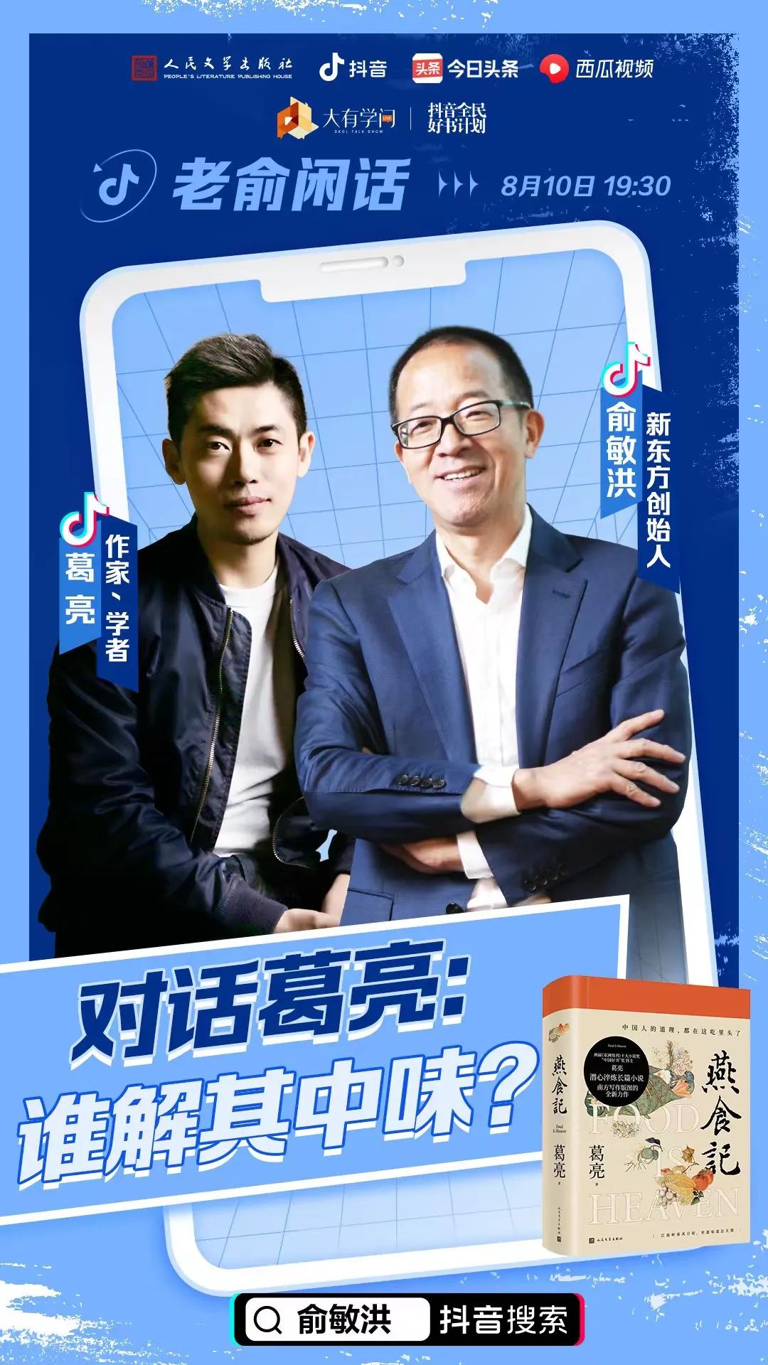 8月10日,葛亮作客俞敏洪直播間,借由《燕食記》的出版,從家學淵源,到個人經(jīng)歷,再到創(chuàng)作的情感支點,雙方展開了深入的對談。