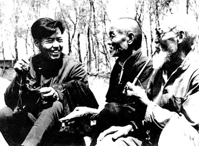 1980年,陳忠實(shí)(左一)在家鄉(xiāng)菜園和老農(nóng)交談。資料圖片