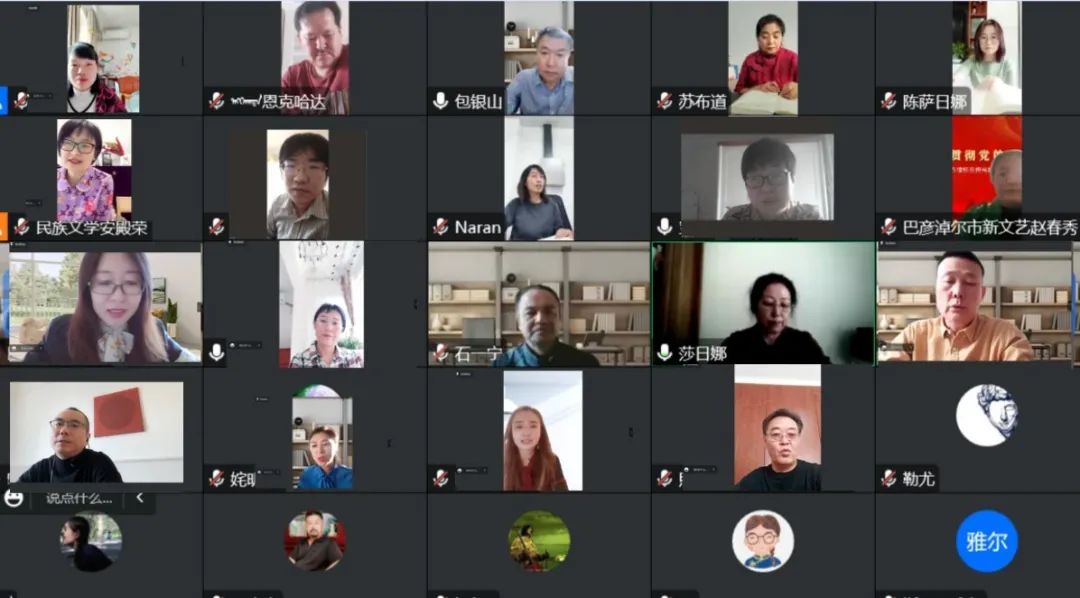 《民族文學(xué)》副主編陳亞軍、一編室主任楊玉梅、一編室副主任永花、二編室副主任安殿榮、二編室編輯郭金達(dá)、一編室編輯柒樂根,《草原》副主編趙筱彬,《鹿鳴》主編蘇煜,《駿馬》主編晉銘,《鄂爾多斯》執(zhí)行主編劉軍,作者代表西·寶音陶格套,譯者代表紅英,從專欄作品的思想內(nèi)容、藝術(shù)特點及存在的問題,如何提升作品質(zhì)量等多角度多層面分別作重點交流發(fā)言。大家一致表示,要始終堅持以習(xí)近平新時代中國特色社會主義思想為指導(dǎo),把學(xué)習(xí)好宣傳好貫徹好黨的二十大精神貫穿于編輯、創(chuàng)作、翻譯中,凝心聚力,攜手推進(jìn)“亮麗內(nèi)蒙古”翻譯作品專欄工作,關(guān)注現(xiàn)實,扎根人民,創(chuàng)作翻譯出更多體現(xiàn)新時代新發(fā)展新氣象的優(yōu)秀文學(xué)作品,奮力推進(jìn)文化自信自強,為鑄牢中華民族共同體意識,構(gòu)筑各民族共有精神家園做出新的貢獻(xiàn)。