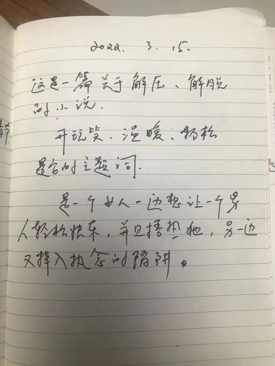 2:在網里找出我要的那尾“魚”。在眾多的人物素材中,確定男女主角、重要配角。再根據他們自身的性格、生活經歷、相互關系,找出我的長篇小說的核心故事?!恫焕稀纷詈鬂饪s成二十五天、三個人之間的故事。
