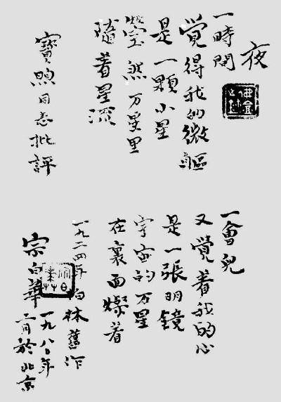 宗白華手書(shū)小詩(shī)《夜》 資料圖片