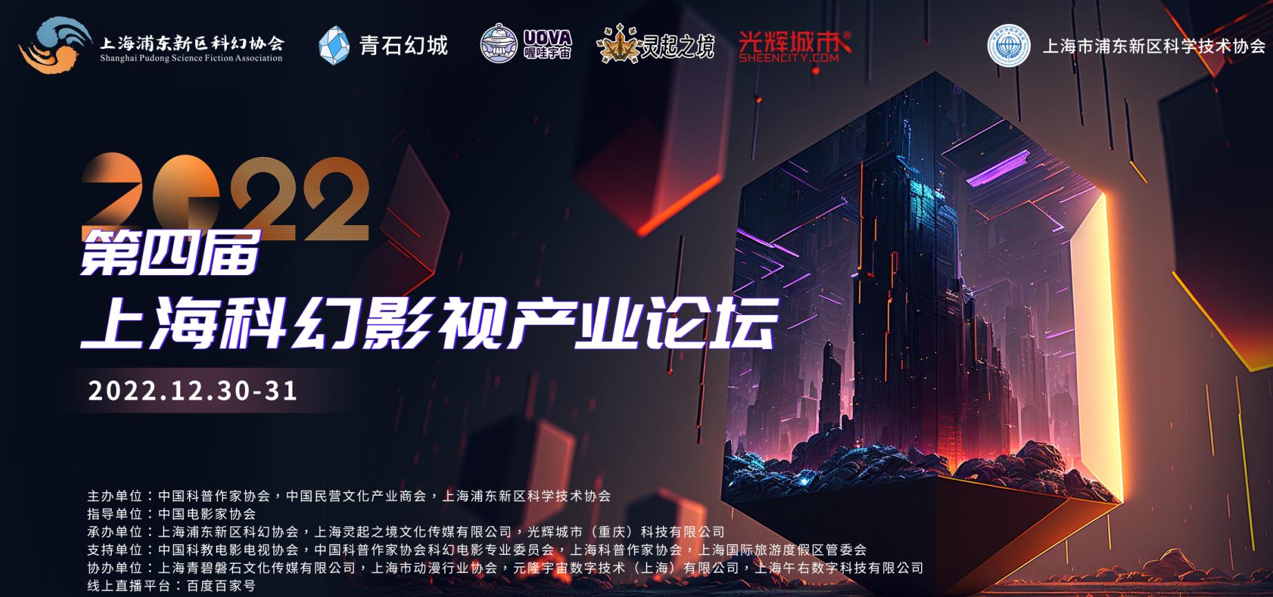 12月30日-31日, 2022第四屆上??苹糜耙暜a(chǎn)業(yè)論壇以線上直播的形式舉行。本次論壇由中國科普作家協(xié)會、中國民營文化產(chǎn)業(yè)商會、上海浦東新區(qū)科學(xué)技術(shù)協(xié)會主辦,中國電影家協(xié)會任指導(dǎo)單位,中國科教電影電視協(xié)會專業(yè)工作委員會、科幻委員會,中國科普作家協(xié)會科幻電影專業(yè)委員會,上海科普作家協(xié)會和上海國際旅游度假區(qū)管委會,全國少兒科幻聯(lián)盟等任支持單位,上海浦東新區(qū)科幻協(xié)會、上海靈起之境文化傳媒有限公司、光輝城市(重慶)科技有限公司等共同承辦。在聚焦科幻影視產(chǎn)業(yè)發(fā)展的基礎(chǔ)上,本屆論壇將重點(diǎn)關(guān)注元宇宙時(shí)代下科幻數(shù)字文娛產(chǎn)業(yè)與元宇宙技術(shù)的結(jié)合與未來展望,以多個(gè)專場論壇、高層對話及項(xiàng)目路演的形式,帶來一系列2022年最新科幻元宇宙技術(shù)與科幻文娛產(chǎn)業(yè)結(jié)合的技術(shù)分享與成果展示,全面推動(dòng)科幻元宇宙產(chǎn)業(yè)聯(lián)動(dòng)與合作。