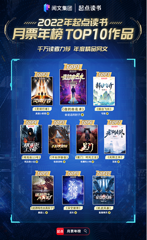 2022起點(diǎn)讀書月票年榜發(fā)布,前十作家中有6位90后