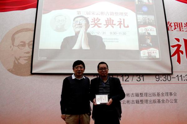 其實(shí),人世間的一切事業(yè),只要你真心喜歡做,那就確確實(shí)實(shí)是以苦為樂,以苦為甜。我要感謝這個(gè)時(shí)代,給了我從事古籍整理的機(jī)會(huì),更要感謝我的師長(zhǎng)和好友,給了我無數(shù)的支持幫助和鼓勵(lì),成果是重要的,但更寶貴的是人與人之間的情誼。感謝古籍規(guī)劃辦、古委會(huì)、上海古籍出版社、《四庫存目叢書》編委會(huì),感謝圖書館古籍界的朋友,也感謝培養(yǎng)我、提攜我的山東大學(xué)的老師們領(lǐng)導(dǎo)們,最后特別感謝宋云彬古籍整理出版基金理事會(huì),給了我這么大的榮譽(yù)。感謝宋云彬先生的家人,捐獻(xiàn)設(shè)立宋云彬古籍整理出版基金,我要向宋云彬先生學(xué)習(xí),為古籍整理事業(yè)做出更多的貢獻(xiàn)。