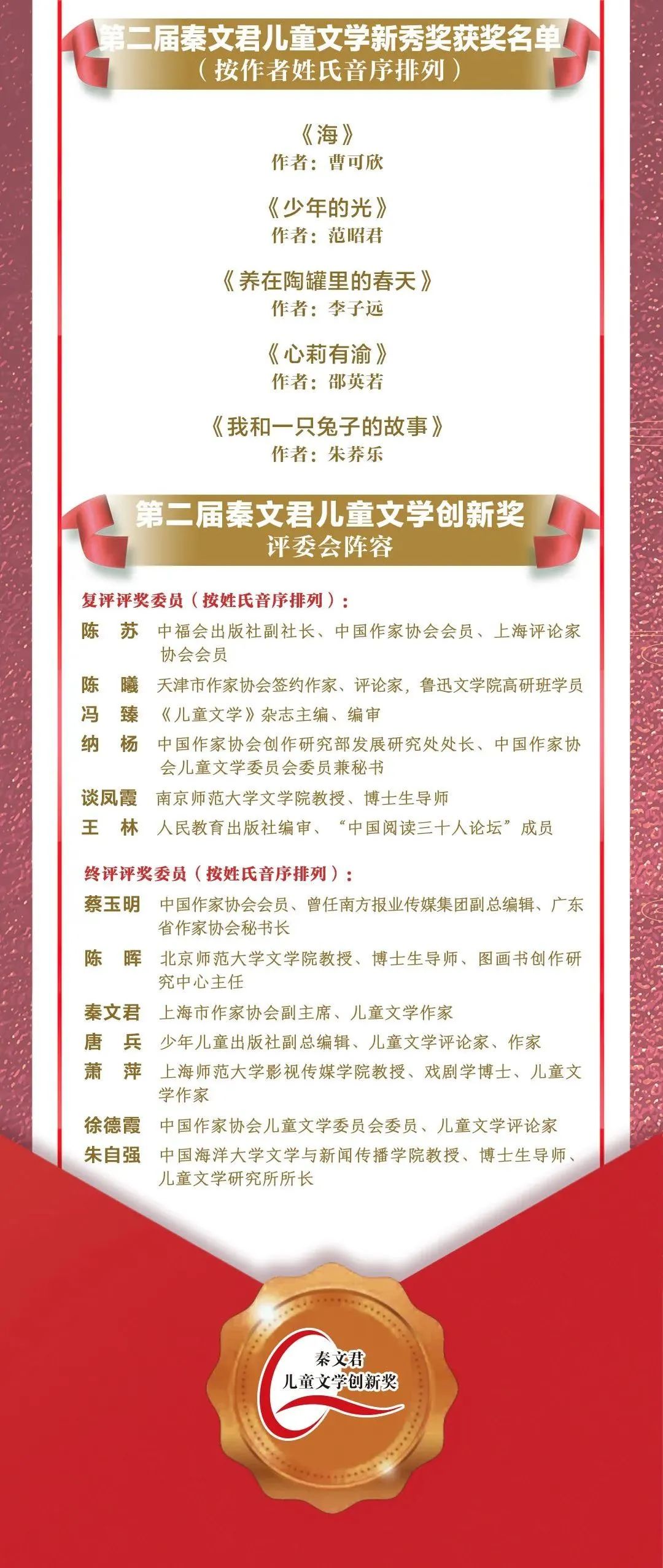 第二屆秦文君兒童文學(xué)創(chuàng)新獎(jiǎng)?lì)C獎(jiǎng),第三屆正式啟動(dòng)