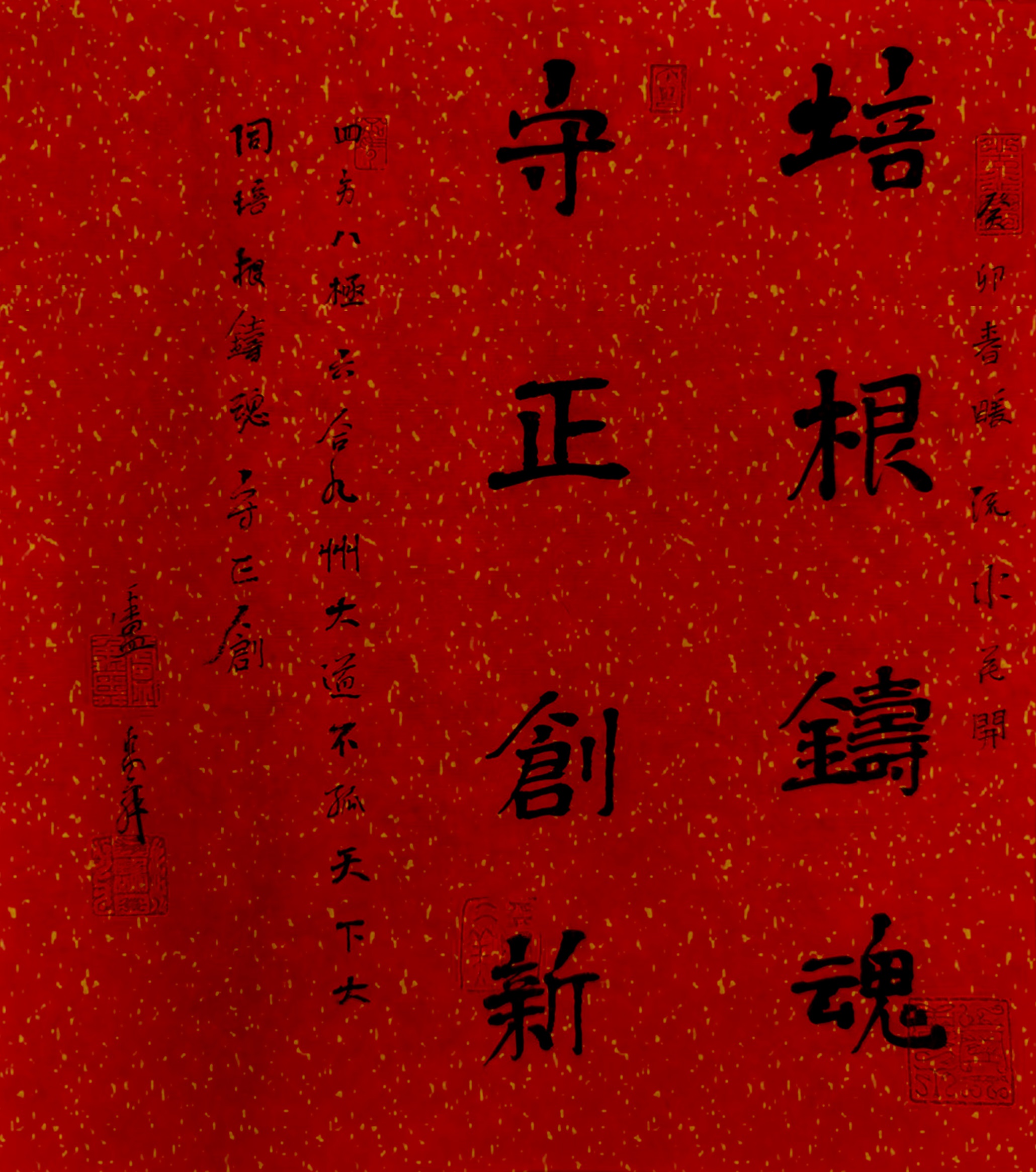 中國國家畫院院長盧禹舜賀詞:癸卯春暖 流水花開“培根鑄魂 守正創(chuàng)新”四方八極 六合九州 大道不孤 天下大同 培根鑄魂 守正創(chuàng)新。