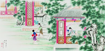 寶玉順腳一徑來到瀟湘館,信步走入,只見鳳尾森森,龍吟細(xì)細(xì),悄無人聲。走至窗前,一縷幽香從碧紗窗中暗暗透出。寶玉便將臉貼在紗窗上,往里看時(shí),耳內(nèi)忽聽得細(xì)細(xì)的長嘆了一聲道:“每日家情思睡昏昏?!弊T鳳嬛繪