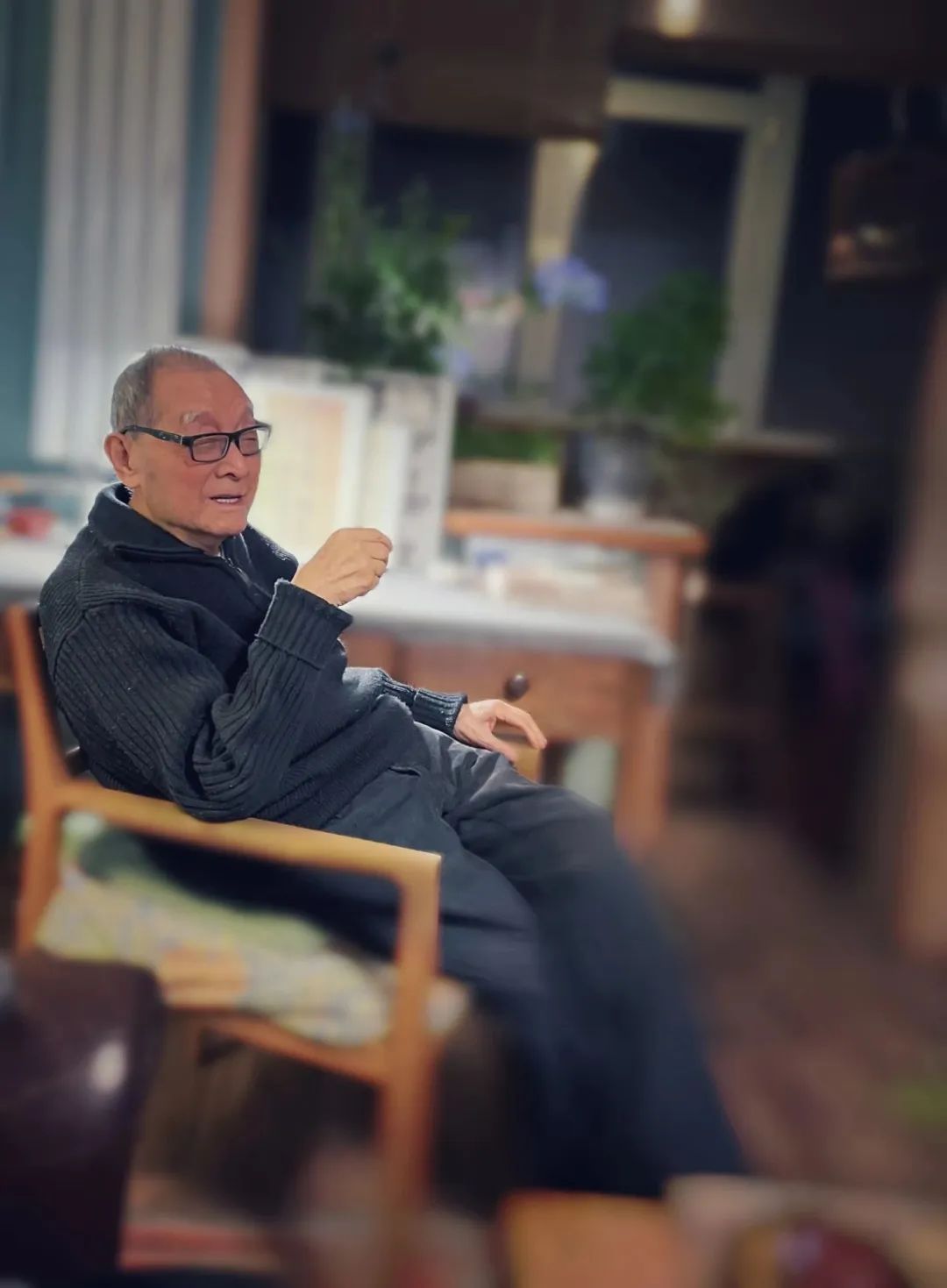 12月23日我見他在書桌前聽音樂的樣子好看,偷拍他,記下:世上竟有如此可愛的老糊涂,每天來陪陪他,聽他講講車轱轆話。俺倆好得那叫一個(gè)“一日不見如隔三秋”。