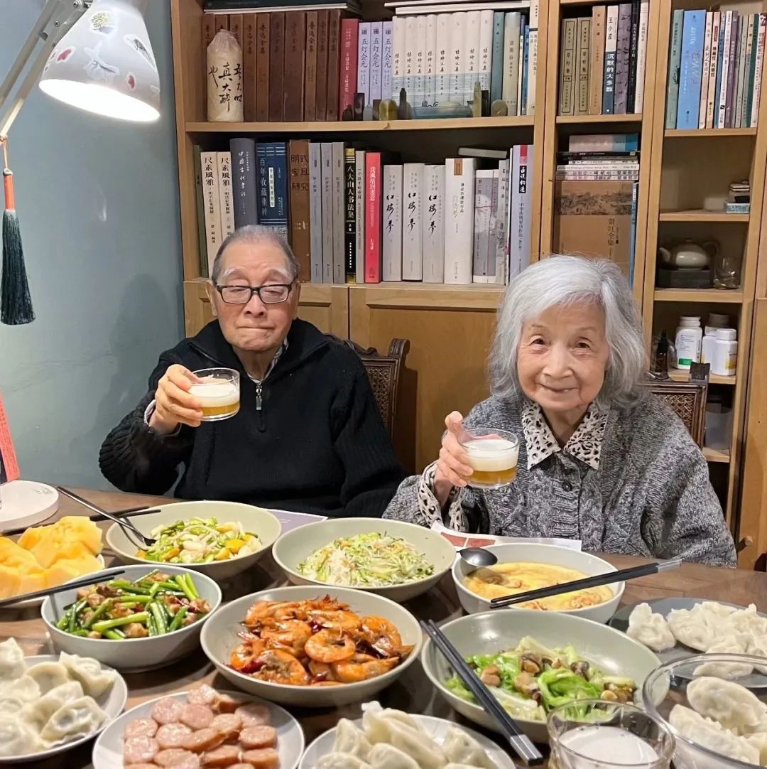 餐桌前,燈光下的老爸爸面色光潔,兩道雪白的長壽眉,笑瞇瞇的眼睛。因?yàn)閯?dòng)作遲緩而多幾分憨態(tài),又純又萌,可愛得我看不夠。