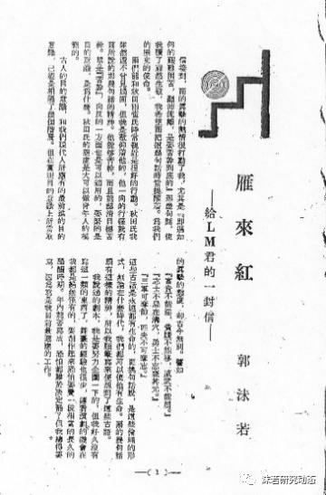 《脫離蔣介石以后》中寫到的一個歷史細節(jié)頗有意思:1927年4月,郭沫若受命前往上海主持總政治部上海分部工作,尚未到達上海,即得知蔣介石已經(jīng)查封了上海分部,遂暫留蘇州,期間致信蔡暢,“報告我的行蹤,并報告富春同志已到上海的消息”?!暗也荒芄_地通信,我寫給蔡暢的信上,‘沫'字是寫成‘妹'字的,于是‘土豪劣紳'一變而為‘母豪劣紳'了”。用“妹”字,或許是藉性別用字迷惑外人,但對于接信人,相必是憑讀音,即能知其為“沫若”。這是不是也可以印證“沬若”通“沫若”。