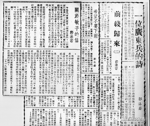 之所以出現(xiàn)這種情況,我想無非兩個原因:一是排字時誤植,一是“沫”“沬”兩字通用。誤植的情況肯定會有(如前所說因鉛字排版的方式),但不會成為數(shù)量很多的現(xiàn)象。那應(yīng)該就是兩字通用的原因,但可以證實嗎?郭沫若雖然曾在《創(chuàng)造十年續(xù)篇》中稱“沫若”的含義實指沬水、若水,但古代另有一條位于河南的河流名沬水。大概郭沫若當時也不太有把握,所以“沬若”“沫若”的署名,一開始就都有使用。上世紀二三十年代有些文字的民間使用,包括約定俗成的用法,與今不盡相同,不過“沫”“沬”兩字的使用有無這種情況,我們今天無從知曉。