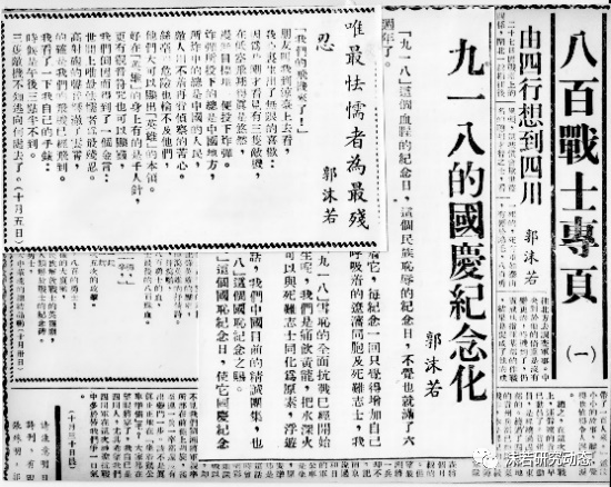 圖三:《救亡日報》刊文的署名,“沬”“沫”均有。郭沫若是《救亡日報》社社長。