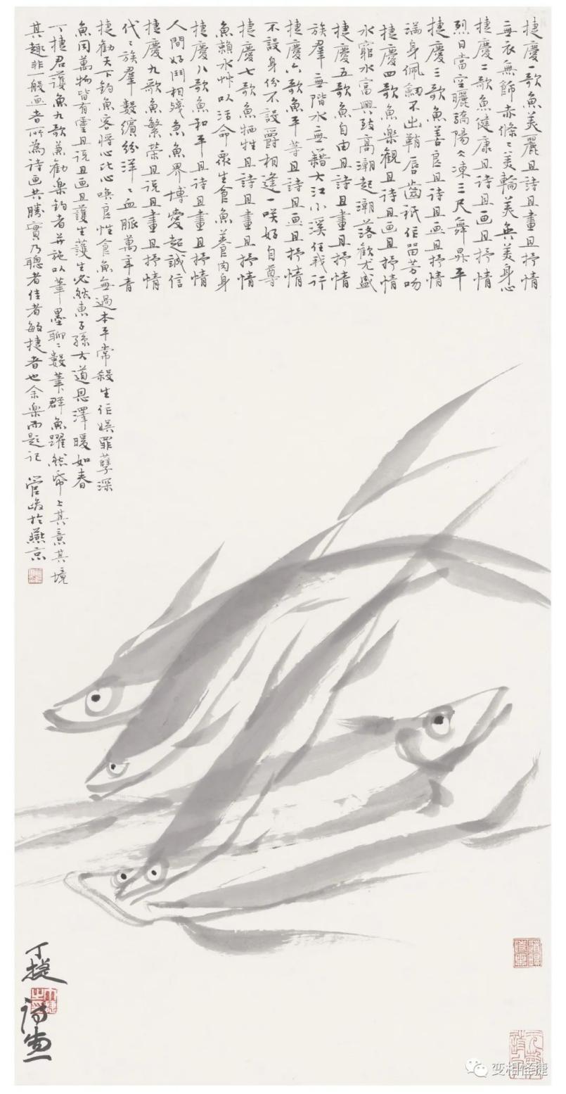 丁捷作《護(hù)魚九歌圖》(管峻題書)
