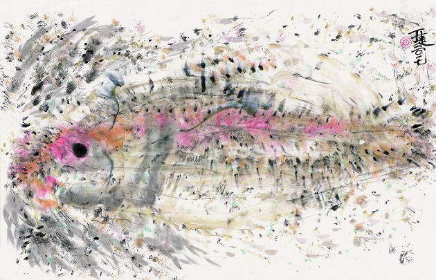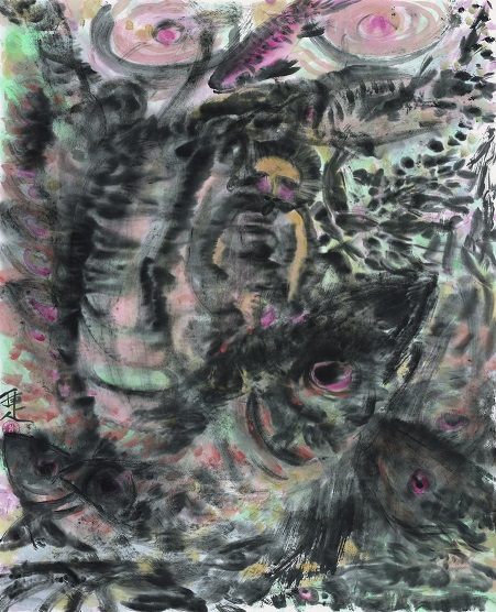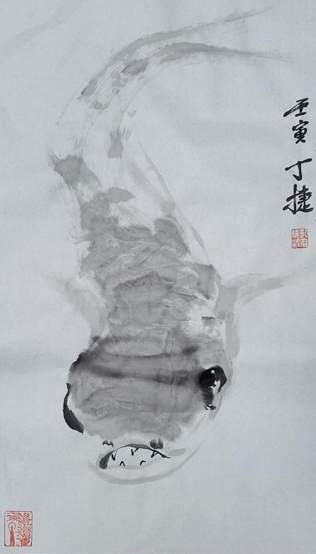 丁捷畫魚從不拘囿于形式的技術(shù)分析,而是以迷離的筆墨取代外在的形象,在有形與無形之間遵循一種生命邏輯。著名雕塑家、中國美協(xié)副主席、中國美術(shù)館館長吳為山說:“大象無形——丁捷吾兄,前身乃酒徒,今世為詩骨,其韻其氣息在有形與無形間。面對他的作品,大愛無言,惟有默契和感動……丁捷讓我對藝術(shù)有了深沉反思,只要打破頭腦中既定牢固的套路,惟有受真情所駕馭的思想,才會有新的創(chuàng)造和發(fā)現(xiàn)?!?/p>