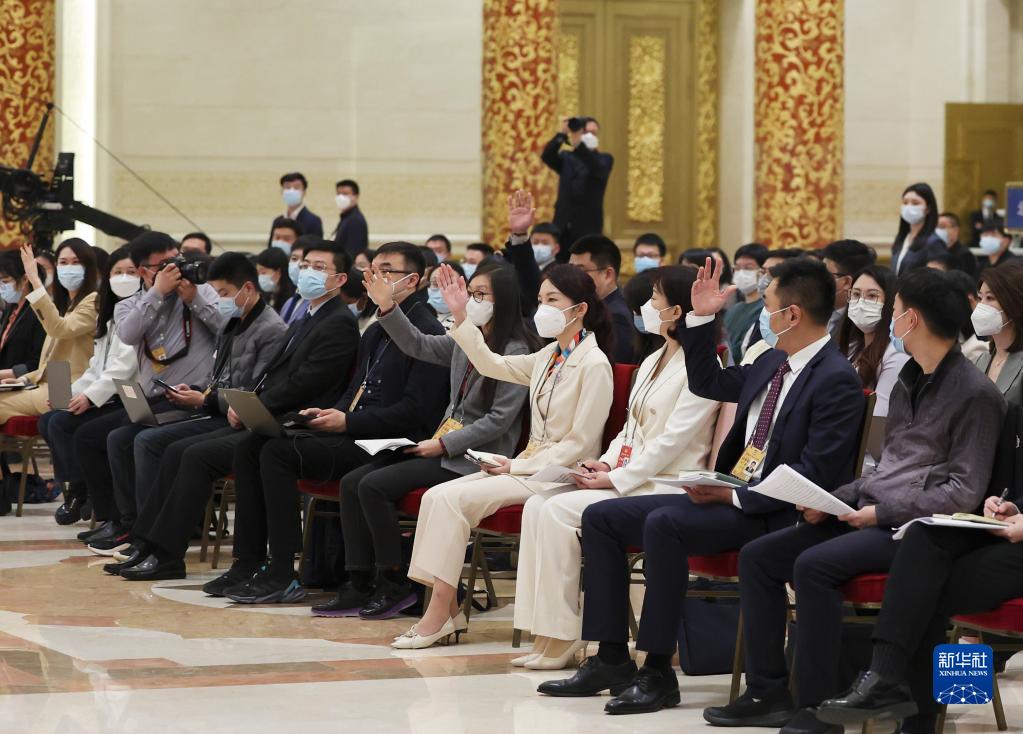 3月5日,全國(guó)政協(xié)十四屆一次會(huì)議在北京人民大會(huì)堂舉行民主黨派中央和全國(guó)工商聯(lián)領(lǐng)導(dǎo)人記者會(huì)。這是記者在舉手提問?!⌒氯A社記者 曹燦 攝