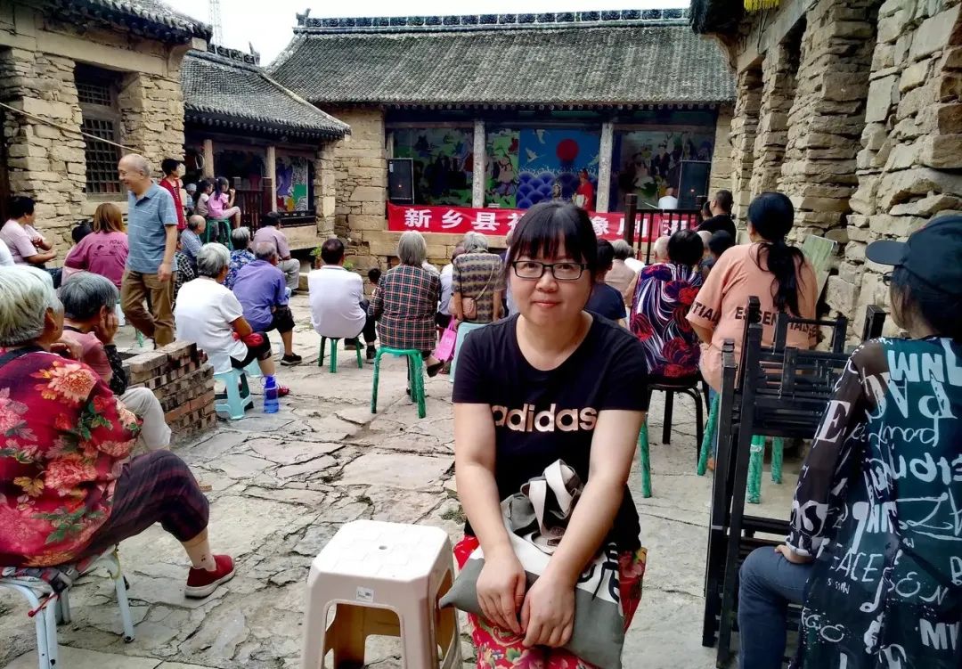 喬葉在豫北老家的修武縣一斗水村和村民一起看廟戲