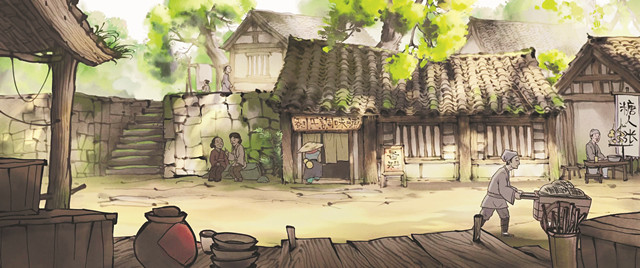 於水:這部作品的美術(shù)確實(shí)用心比較多。一開始我們也拿不準(zhǔn)到底是用國(guó)畫多一點(diǎn),還是用當(dāng)代西方繪畫多一點(diǎn),以至于中間出現(xiàn)了一些反復(fù)。莫矜還沒加入的時(shí)候,我們的畫風(fēng)可能更偏當(dāng)代繪畫——講光影、透視、結(jié)構(gòu),但是覺得這種風(fēng)格不夠中國(guó)。莫矜加入后,我們希望他把國(guó)畫和西方繪畫的比例從原來的4:6調(diào)整到6:4。我們希望片子一眼看過來有國(guó)畫感,但里面又要表現(xiàn)光影和透視。這其實(shí)挺難的。很多國(guó)畫其實(shí)沒有太多的色彩,在這里我們需要構(gòu)建色彩、光影和體積。有了這些東西,再兼顧國(guó)畫的趣味比如留白。好在這種嘗試最后非常成功,我覺得這種美術(shù)風(fēng)格還是比較適合這個(gè)片子的。