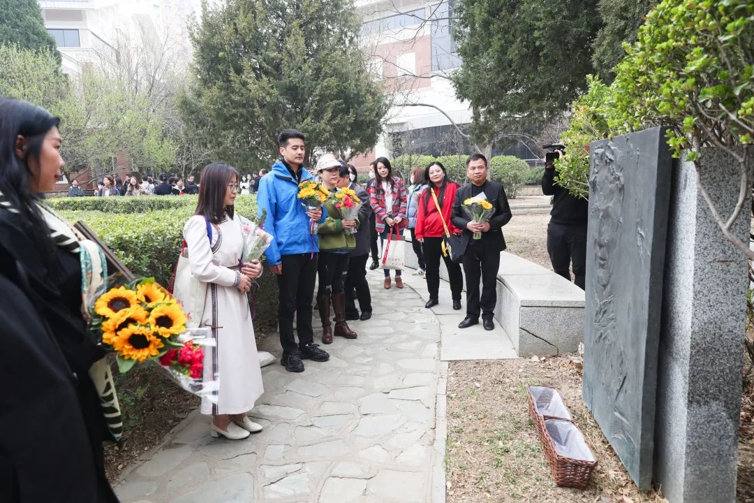隨后,大家移步中國現(xiàn)代文學(xué)館庭院,向文學(xué)館園內(nèi)的作家塑像致敬。
