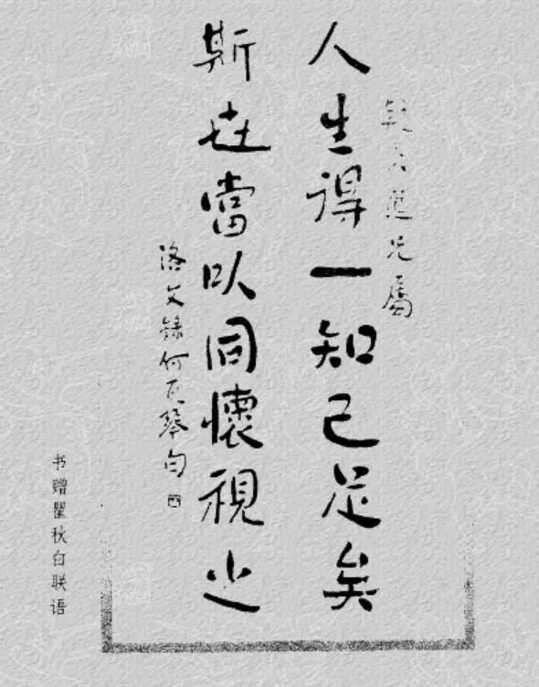人物的重新出現(xiàn)作為政治評價(jià)發(fā)生轉(zhuǎn)變的標(biāo)志,“七人照”并非孤證,1981年版還有兩張照片需要討論。一是第五卷第三張“書贈瞿秋白聯(lián)語”。自從1964年毛澤東對李秀成自述和瞿秋白《多余的話》的批評,瞿秋白被定性為黨內(nèi)叛徒,“文革”期間瞿秋白及其父母墓被砸毀。“文革”結(jié)束后雖然歷經(jīng)曲折,瞿秋白正式平反要等到 1982年9月中共第十二次全國代表大會中紀(jì)委的報(bào)告,但事實(shí)上的平反在1980年已經(jīng)開始。是年6月17日,中國文聯(lián)、中國作協(xié)和中國社會科學(xué)院在人民大會堂聯(lián)合舉行座談會,紀(jì)念瞿秋白就義45周年,周揚(yáng)在會上講話,高度贊揚(yáng)瞿的一生。1980年10月19日,中共中央辦公廳發(fā)出了轉(zhuǎn)發(fā)中紀(jì)委《關(guān)于瞿秋白同志被捕就義情況的調(diào)查報(bào)告》的通知,認(rèn)定《多余的話》絕不是叛變投降的自白書,標(biāo)志著對從1964年就開始羅織的“瞿秋白自首叛變案”的平反。[29]考慮到第五卷的發(fā)稿時(shí)間也是1980年[30],基本與瞿秋白平反同步,1981年版《魯迅全集》特意挑選魯迅給瞿秋白寫的條幅,昭示魯迅與瞿秋白生死知己的關(guān)系,似乎有確認(rèn)與加持瞿秋白平反的作用。