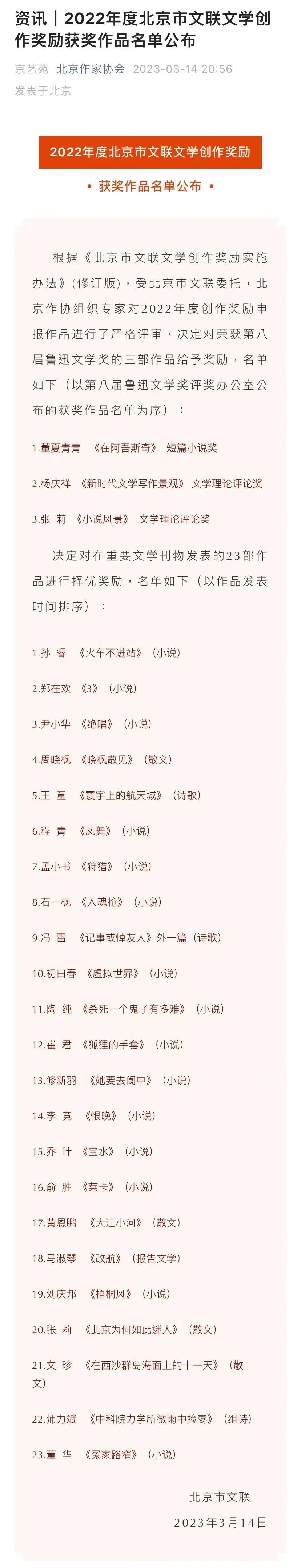 北京作協(xié)公眾號(hào)簽約名單新聞截圖