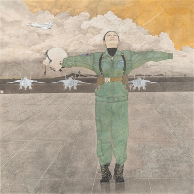 “第五屆全國中國畫展覽”上的中國畫《當(dāng)代巾幗》,作者曹晶。
