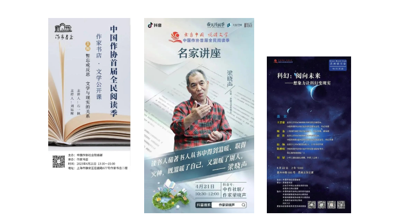 在全民閱讀季啟動期間,全國文學作品著作權(quán)保護與開發(fā)平臺啟動儀式及圓桌會議、“全民閱讀推廣城市”座談會、“數(shù)字媒介與全民閱讀”交流會、“閱向未來”科幻文學分享會等活動同期舉行,何建明、冉冉、魯敏、薛濤、黑鶴、石一楓、洪放等作家還走進上海海洋大學、作家書店以及靜安、黃浦、普陀、閔行、虹口、寶山等區(qū)中小學及群眾文化場所開展“名家講座”活動,推動文學閱讀走進基層、走進群眾,彰顯文學的價值,為上海市民帶來一場場流動的文學盛宴。