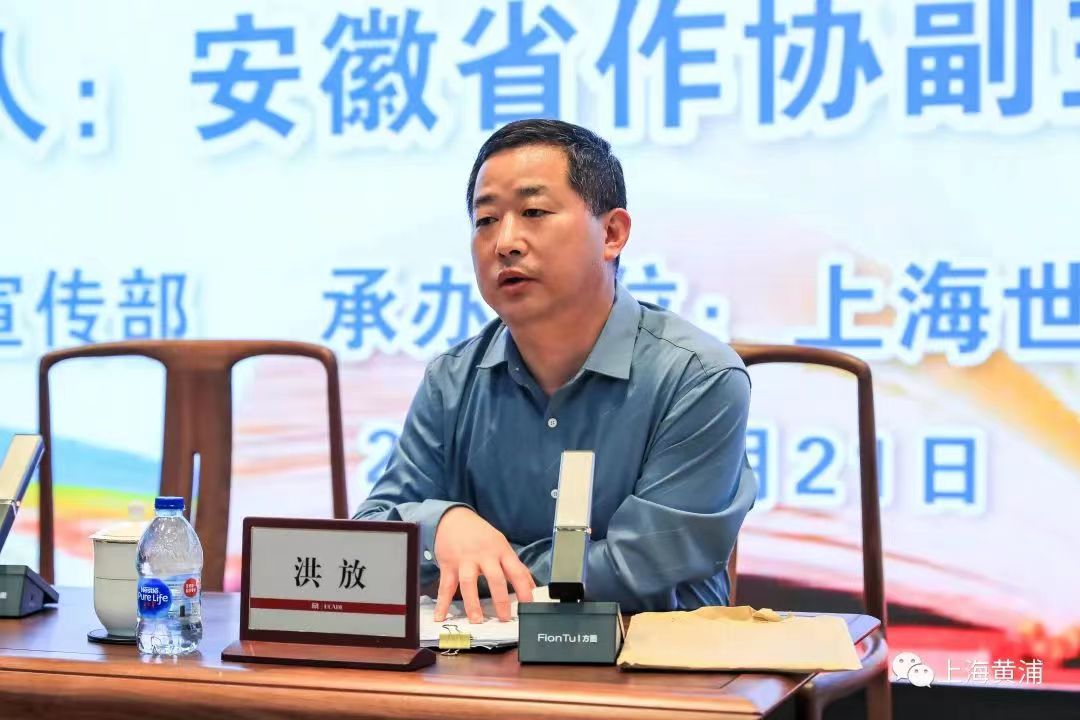 作家洪放在黃浦區(qū)世博濱江大廈授課