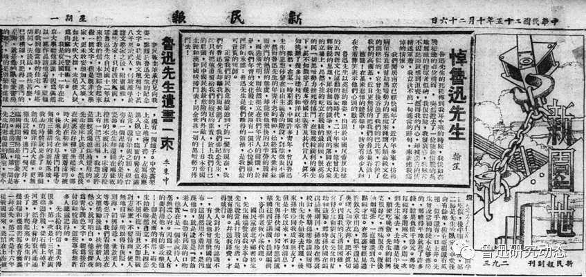 二是《魯迅先生遺書一束》,署名“李秉中”,刊載于南京版《新民報》副刊“新園地”第293期(1936年10月26日第4版)。可以肯定,這個“李秉中”就是與魯迅交往頗為密切的青年人李秉中。因?qū)W界并沒有捕捉到這篇文章,此處照錄文字如下: