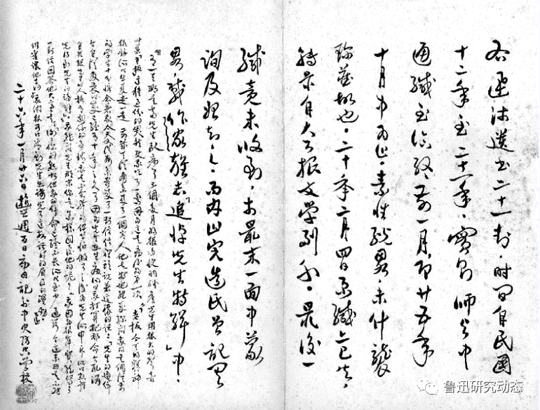 右迅師遺書二十一封,時間自民國十二年至二十一年,實則師與中通緘至臨終前一月,即廿五年十月中為止。素性脫略,未什襲珍藏故也。二十年二月四日原緘亦已失,轉(zhuǎn)錄自《大公報》文學副刊。最后一緘竟未收到,于最末一面中蒙詢及始知之,而內(nèi)山完造氏曾記其略,載《作家》雜志“追悼先生特輯”中。