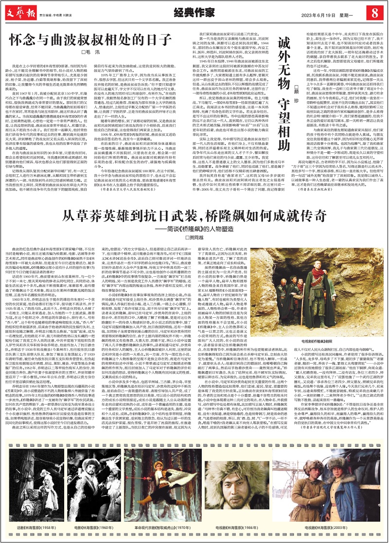 曲波的紅色經(jīng)典作品《林海雪原》可謂家喻戶曉,不僅在當(dāng)時(shí)是暢銷小說,而且還被改編為秧歌劇、電影、話劇等多種藝術(shù)形式。同樣是曲波嘔心瀝血?jiǎng)?chuàng)作的《橋隆飆》雖然不如《林海雪原》一樣被大眾熟知,但是直至今日仍迸發(fā)著活力,被多次改編成電視劇?!稑蚵★j》這部小說有什么樣的創(chuàng)作故事?為何時(shí)至今日仍能引起讀者的喜歡?話說在1960年代,曲波曾來到山東省萊州市,與一位個(gè)子不到一米七、整天笑哈哈的胖老頭同吃同住、共同勞動(dòng),體驗(yàn)生活長(zhǎng)達(dá)半個(gè)多月。曲波不斷搜集素材,琢磨思考,最終塑造了橋隆飆這個(gè)藝術(shù)形象,而這位在萊州市默默無聞的飯店經(jīng)理,正是當(dāng)年名震膠東的喬明志。1903年3月,喬明志出生于現(xiàn)在的濰坊市朱里村一個(gè)貧窮的農(nóng)民家庭,他自幼喜好打抱不平,很早就不再讀書,并于1925年進(jìn)入了昌邑馬隊(duì)……【詳細(xì)】