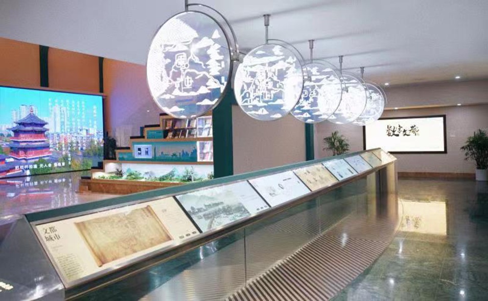 一樓展廳東側(cè)文脈區(qū)域,展示2500年來(lái)南京文學(xué)發(fā)展與城市變遷間相伴相生的關(guān)系。