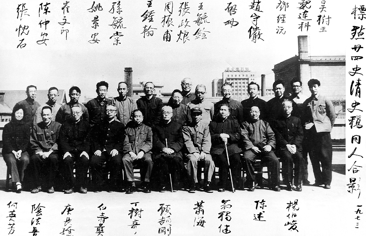 《清史稿》標(biāo)點人員合影,后排左五為孫毓棠。名字由啟功手寫。