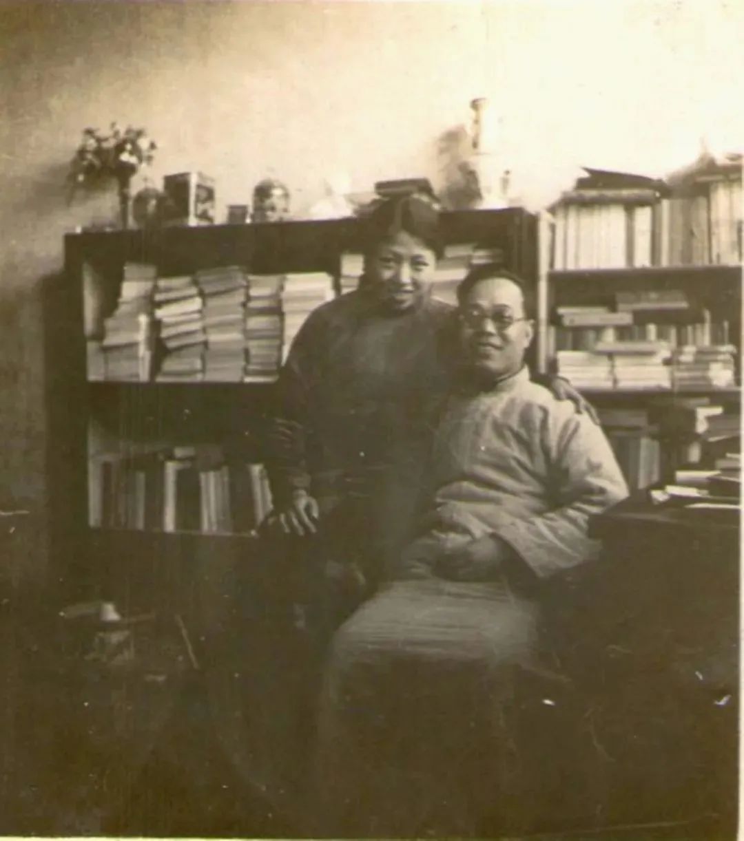 看著我爸這張書(shū)桌,就難以抑制我胸中一種特殊的感情,看到這張書(shū)桌就仿佛又看到我爸,他終生伏案寫(xiě)作就是用的這張書(shū)桌,從1933年10月和我媽成婚,這是我的外公送給他女婿的唯一一件禮物,我的曾經(jīng)留學(xué)美國(guó)的外公那時(shí)在北京交通廳工作,協(xié)助詹天佑管理北京的鐵路系統(tǒng)。岳父知道這個(gè)女婿就是以寫(xiě)作為生,送的嫁妝就是這張書(shū)桌。之后,這張書(shū)桌就陪伴了我父親一輩子,從年輕到生命的最后一刻,還總有和我媽的合影: