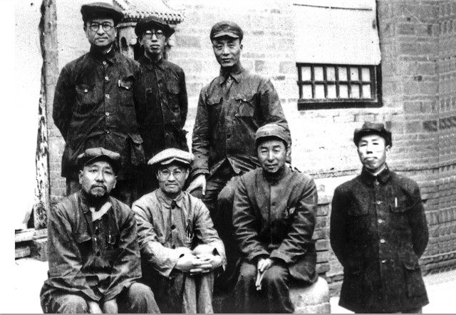 華北聯(lián)大在張家口時期的合影。前排左起:于力、何干之、林子明、成仿吾。后排左起:沙可夫、劉介愚、艾青