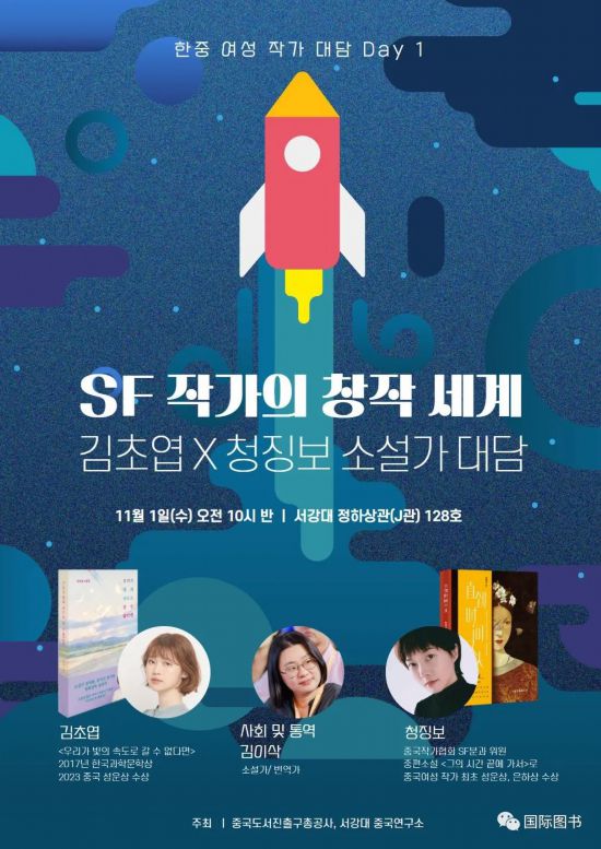 本次韓國“中國文學(xué)讀者俱樂部”活動不僅是中韓科幻作家和翻譯家的交流盛會,也為當(dāng)?shù)刂袊膶W(xué)、出版界代表以及對中國語言、文化和科幻文學(xué)感興趣的廣大韓國讀者提供了了解中國文學(xué)、中國作家的難得機(jī)會。嘉賓們的分享不僅讓現(xiàn)場觀眾深入了解科幻創(chuàng)作的特點(diǎn)、邏輯和作家的成長故事,也展現(xiàn)了不同國家、不同文化背景科幻文學(xué)的碰撞與融合。這種跨文化交流對于推動科幻文學(xué)的發(fā)展,增進(jìn)中韓兩國友誼具有重要的意義。