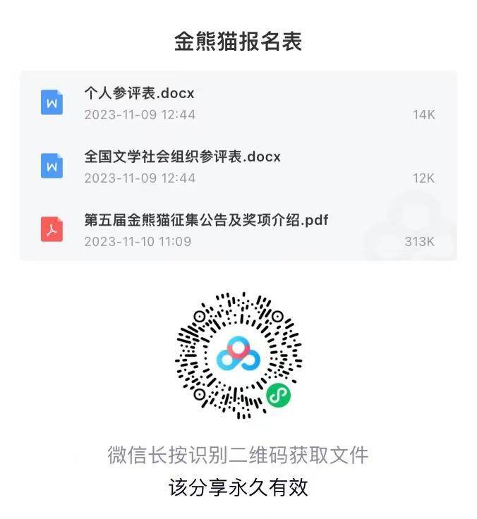 1.下載填寫《第五屆“金熊貓”網(wǎng)絡(luò)文學(xué)獎個人作品參評表》。
