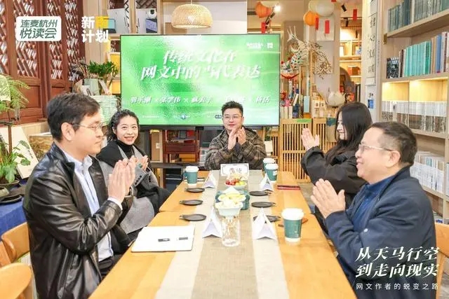 11月12日上午,浙江省作協(xié)副主席、浙江省網(wǎng)絡(luò)作協(xié)副主席管平潮,咪咕數(shù)媒總編輯張學(xué)偉,知名網(wǎng)絡(luò)作家瘋丟子、王巧琳,青年作家蔣話(huà)齊聚曉風(fēng)·明遠(yuǎn)書(shū)店,結(jié)合個(gè)人的創(chuàng)作、編輯經(jīng)驗(yàn),共同圍繞著“傳統(tǒng)文化在網(wǎng)文中的當(dāng)代表達(dá)”主題進(jìn)行研討,探索中華優(yōu)秀傳統(tǒng)文化與網(wǎng)絡(luò)文學(xué)融合的邊界與路徑。