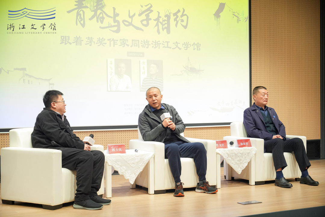 “青春與文學(xué)相約——跟著茅獎作家同游浙江文學(xué)館”是本屆茅盾文學(xué)周的首發(fā)活動,著名作家畢飛宇、徐貴祥來到浙江文學(xué)館,和學(xué)生們一起分享有關(guān)文學(xué)的故事、交流有關(guān)文學(xué)的看法。