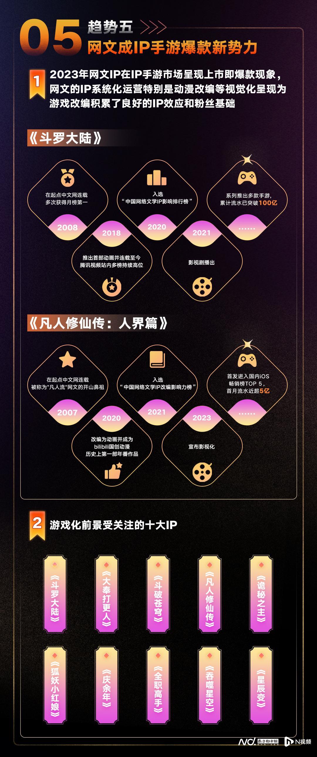 從《斗羅大陸》等IP手游的成功可以看出,深入挖掘網(wǎng)文IP的潛在價值,為游戲行業(yè)帶來了更多的創(chuàng)新和增長點?!禝P風(fēng)向標(biāo)》也列出了《斗破蒼穹》《全職高手》《詭秘之主》《大奉打更人》等游戲化前景備受關(guān)注的網(wǎng)文IP。