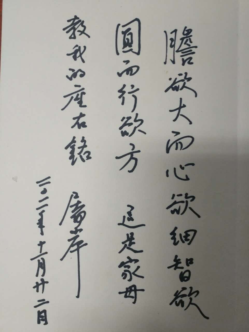 “膽欲大而心欲細(xì)智欲圓而行欲方 這是家母教我的座右銘 屠岸 二0一一年十一月二二日”